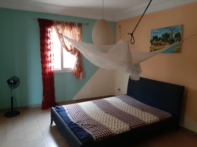Sie haben ein Doppelzimmer mit eigenem Bad und WC in einem komfortablen Haus mit Meerblick (7 Gehminuten zum Strand) und genießen die kulinarischen Köstlichkeiten Westafrikas.